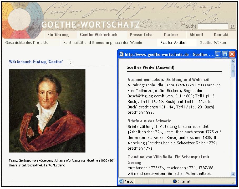 Robert Charlier: Goethe-Lexikographie im Internet − Aspekte prospektiver Digitalisierung. In: Edieren in der elektronischen Ära, hrsg. von G. Reeg und M. J. Schubert (Informationstechnologie und Geisteswissenschaften; 1). Berlin 2004, S. 17–37. Sonderdruck bestellen >