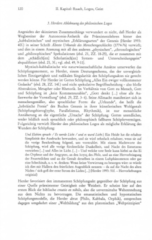 Schöpfungsmodelle, die Herder abtut (Philo, Kabbala, Orphik), entsprechen